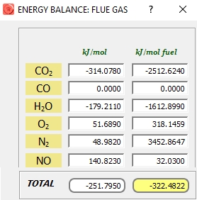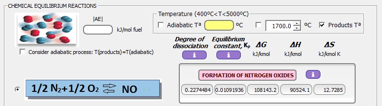 Este caso analizado, es aplicable a la combustión en turbinas de gas, donde la combustión es a presión constante. Si se estuviera considerando un motor alternativo, entonces sería necesario emplear las energías internas, no las entalpías. Además, debido a que en la formación de NO no cambia el número total de moles de productos,
