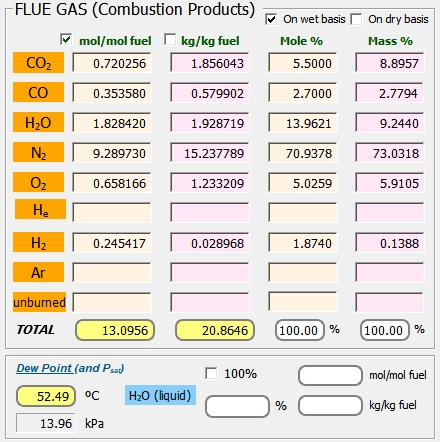 Análisis 95: Generador de vapor a partir del conocimiento del CO₂(%)v y CO(%)v en base húmeda