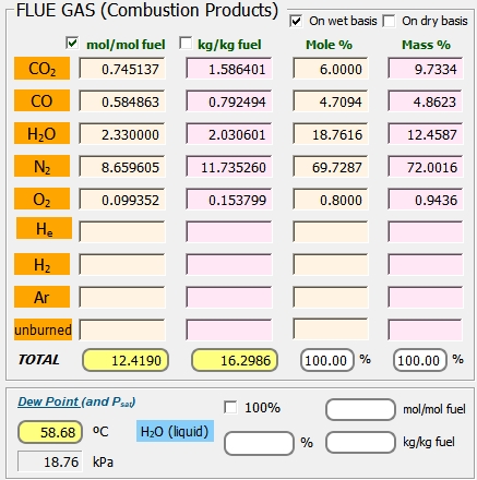 Análisis 96: Generador de vapor a partir del conocimiento del CO2(%)v y O2(%)v en base húmeda