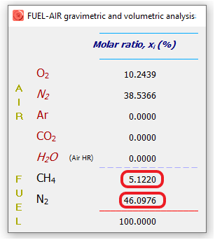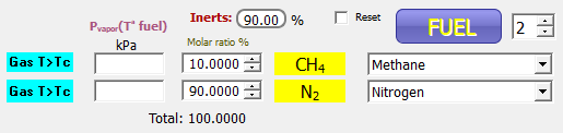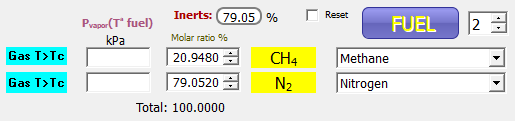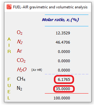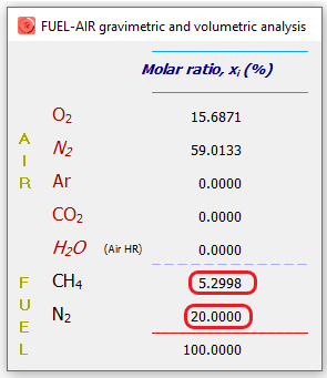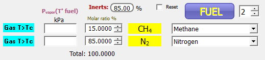 Cualquier mezcla estequiométrica (λ=1) con mayor del 85% de N2 será no inflamable.