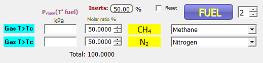 ¿Es la mezcla estequiométrica con fuel de 50% CH4 + 50% N2 inflamable?