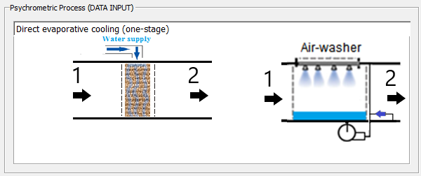En caso de que el aire de suministro sea cálido y seco, un sistema adiabático puede satisfacer las necesidades de humidificación como un niebla, que usa calor sensible en el aire para su fuente de energía. En el entorno adecuado, estos sistemas pueden ser muy económicos debido al efecto de enfriamiento que proporcionan. Los sistemas adiabáticos usan el calor del aire circundante para convertir el agua en vapor para la humidificación (evaporación).