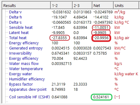 Ajustamos la temperatura de salida del recalentador, para tener un calor sensible neto de 11 kW