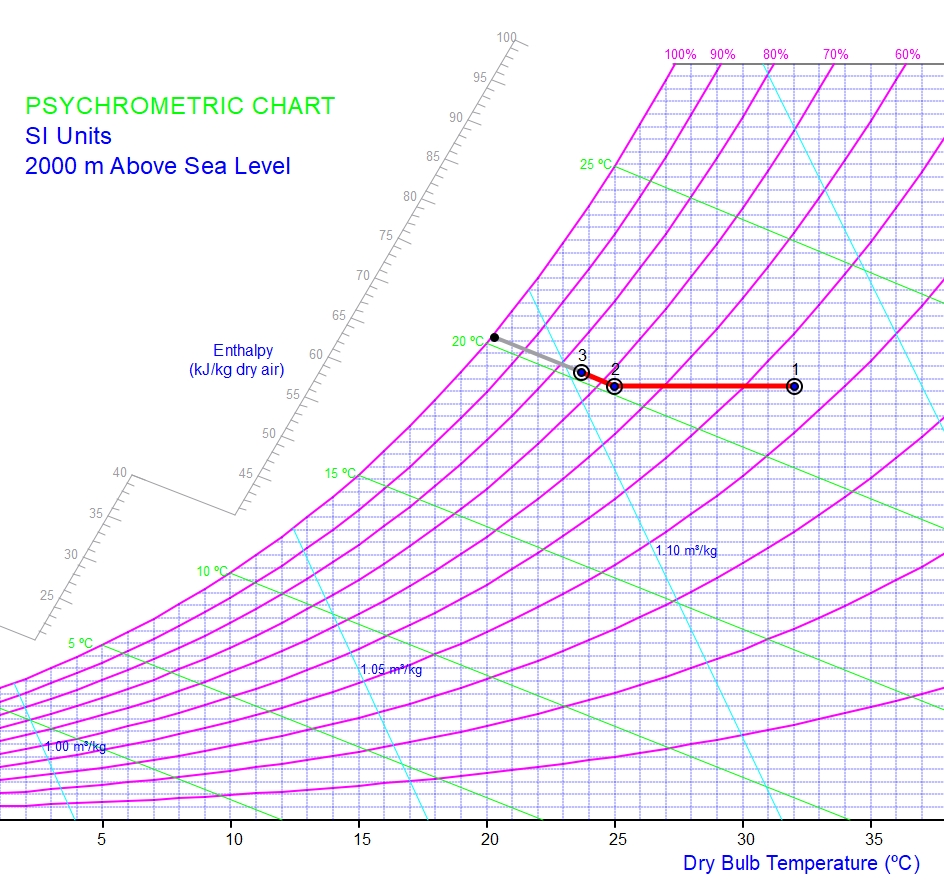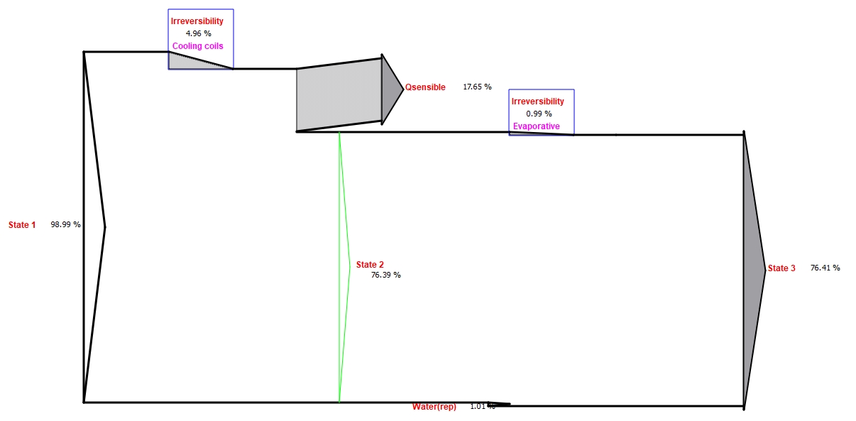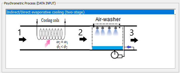 La primera etapa (indirecta) utiliza agua fría de recirculación para reducir el calor del aire. Como no se añade humedad, el aire que sale del intercambiador de calor tiene una temperatura de bulbo seco y de bulbo húmedo inferior a la del aire exterior. En la segunda etapa de enfriamiento (directa) la temperatura del aire baja más mediante la evaporación del agua. Adecuado para clima húmedo y condiciones tropicales, para grandes superficies, consiguiendo reducir el consumo de agua y de energía, con posibilidad de uso en calefacción.