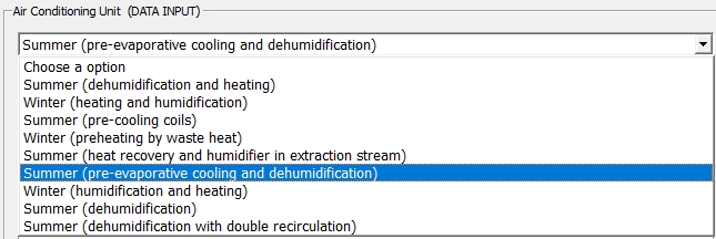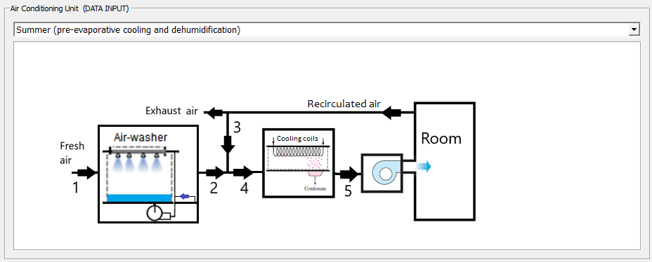 Esta unidad de tratamiento de aire es empleada en época de verano para refrigerar el aire de un espacio. Dispone de dos elementos principales, un lavador de aire adiabático y una batería de enfriamiento con deshumidificación.