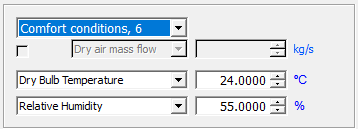 Condiciones de confort: 24 °C (bulbo seco), HR=55%