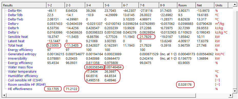 Nota: El aporte de calor (proceso 7-8) se consigue con un caudal de 0.3 kg/s de agua caliente a 68.35 °C, saliendo el agua a 51.0 °C.