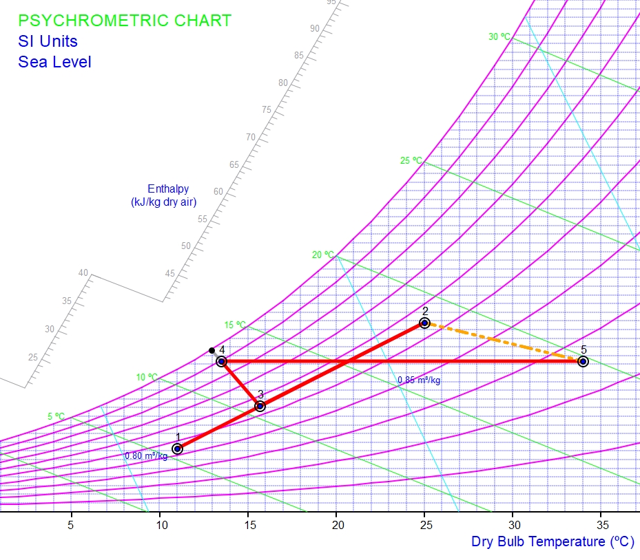 Análisis 25: Sistema de aire acondicionado para invierno (lavador de aire+calentamiento)