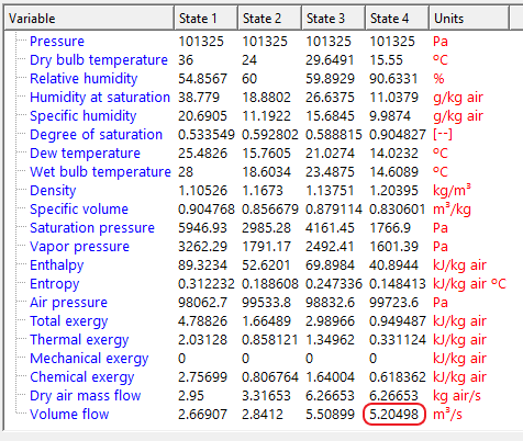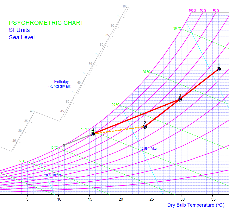 El aire de recirculación generalmente suele ser del orden del 70% al 80% del total (aquí es del 53 %); este aire de ventilación es necesario porque conviene renovar la atmósfera del recinto, ya que en algunas ocasiones el aire de infiltraciones no es suficiente.