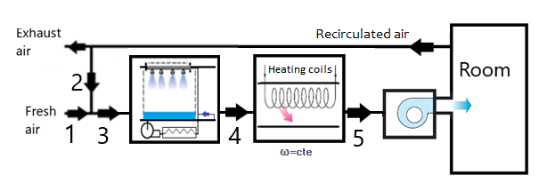 Análisis 32: Sistema de aire acondicionado para invierno con humidificación y calentamiento